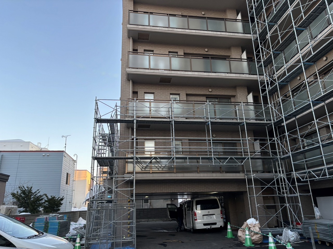 札幌市内にある中高層マンションを中心に多数の足場工事を手がけてきました。外壁改修や大規模修繕など、居住者の生活に配慮しながら、安全性・作業性の高い足場を設置。狭小地や高層階にも柔軟に対応できるノウハウと経験を活かし、元請け様からの信頼も厚く、リピートのご依頼も多数いただいております。作業中の近隣対応も丁寧に行い、地域密着型の施工体制を整えています。
